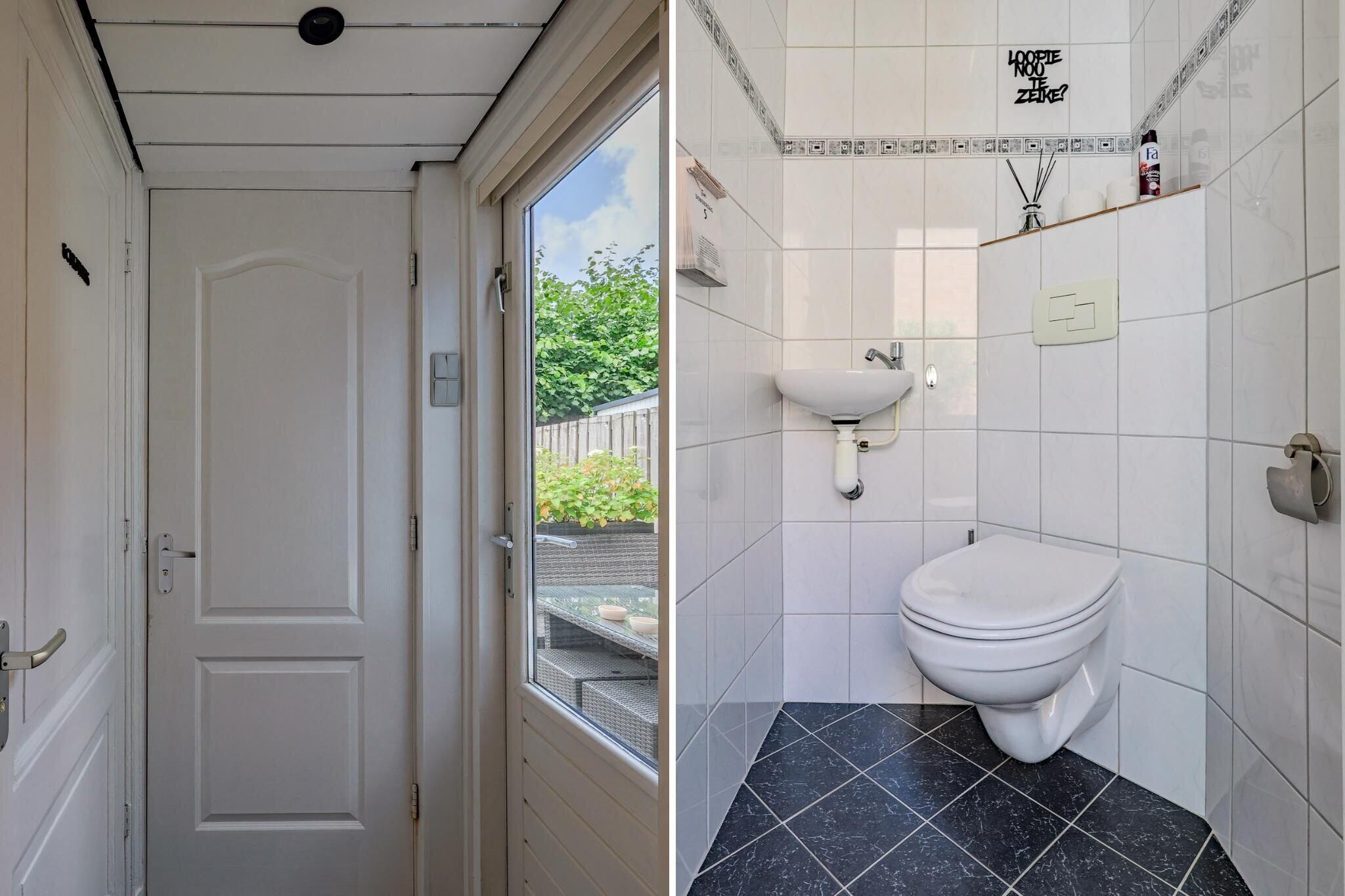 Binnenkomst in de hal met garderoberuimte, meterkast en trapopgang. De open keuken bevindt zich aan de voorzijde van de woning en is van alle gemakken voorzien. Zo beschikt de keuken over een stijlvol composiet aanrechtblad en diverse inbouwapparatuur, waaronder een 4-pits gaskookplaat, afzuigkap, combimagnetron, vaatwasser, koel-/vriescombinatie en een Quooker. De sfeervolle doorzonwoonkamer is voorzien van een ruime trapkast en stijlvolle inbouwspots. Vanuit hier is er toegang tot de aanbouw met portaal van waaruit toegang tot de achtertuin, de nette toiletruimte met zwevend toilet incl. fonteintje en de badkamer met inloopdouche v.v. thermostaatkraan, een wastafel, de wasmachineaansluiting en de cv-installatie.