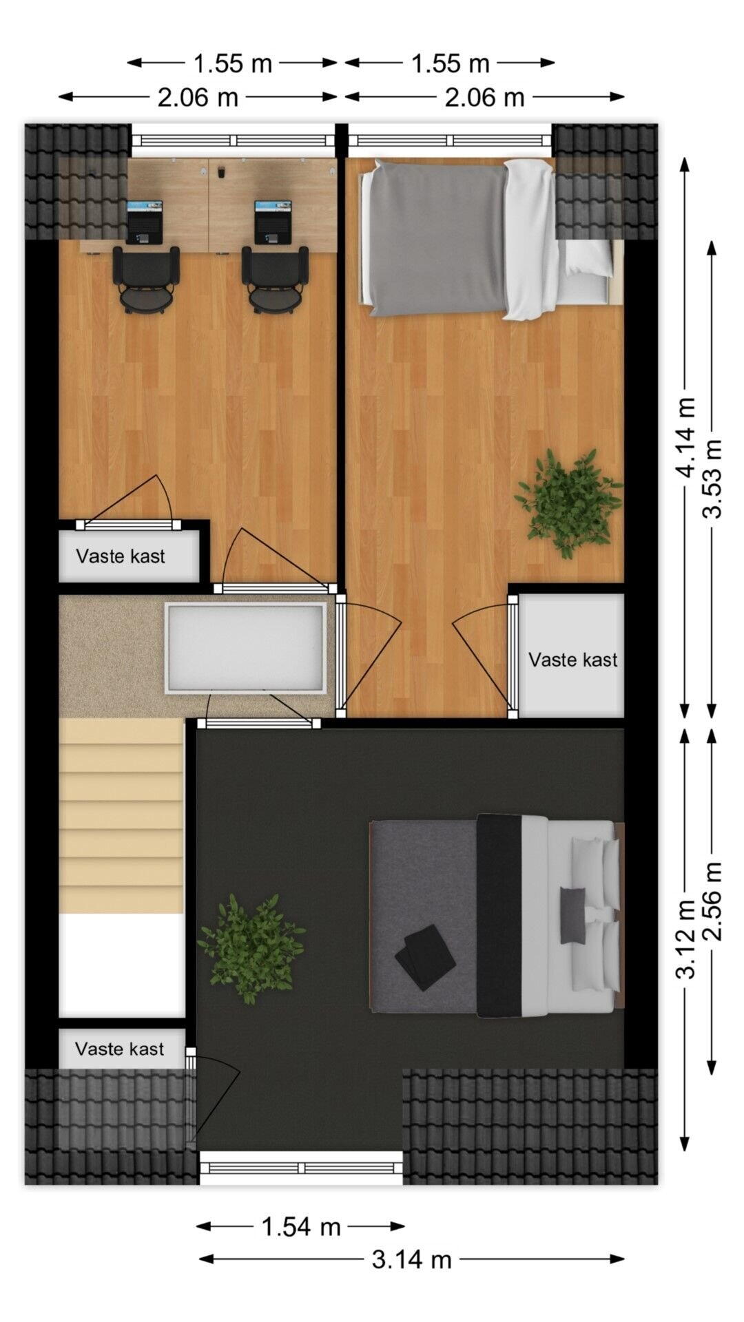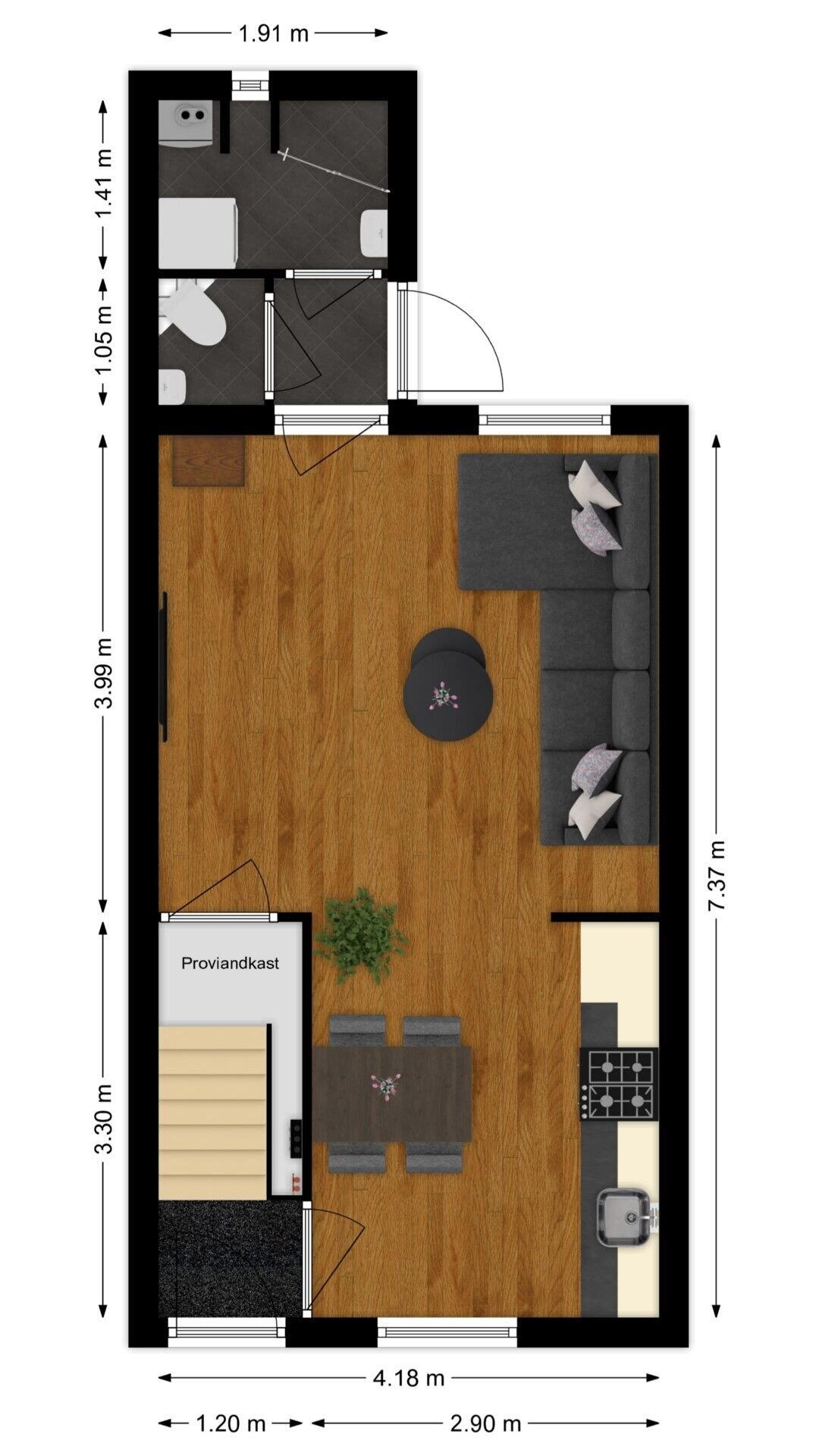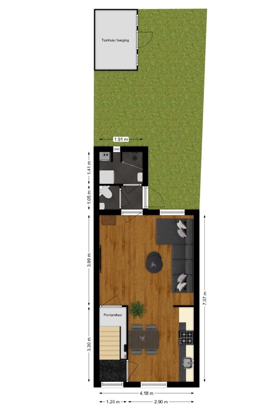 - 28 m² (7,00 meter diep en 4,50 meter breed)