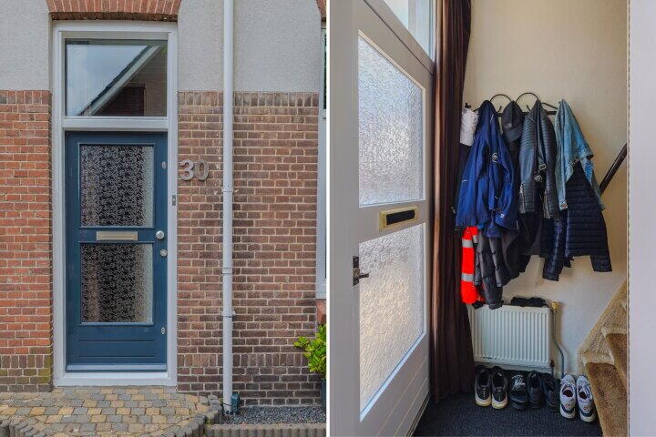 - De woning is deels uitgerust met houten kozijnen en deels met kunststof kozijnen.